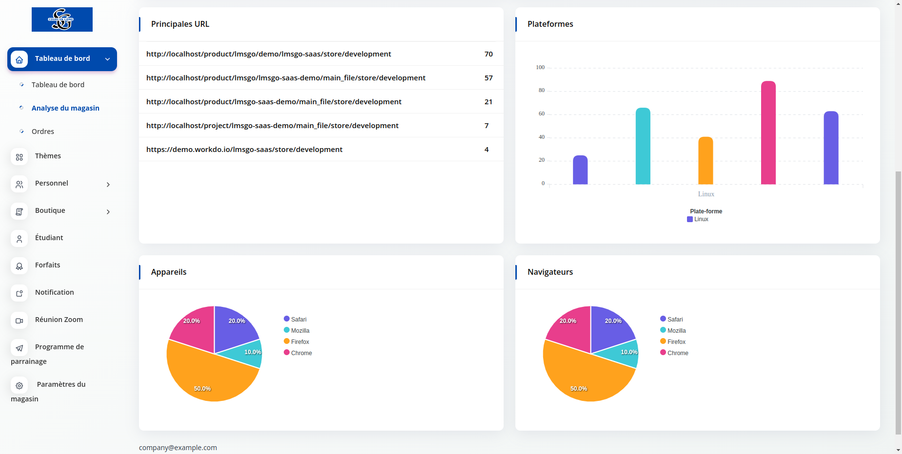 Le package de gestion de commerce électronique de LMS Suite vous offre une boutique en ligne sécurisée et prête à vendre. Le package rassemble tous les éléments clés, de la conception au traitement des paiements. Cela vous donne une longueur d’avance dans votre entreprise de commerce électronique. Chaque boutique est construite à l’aide d’un framework PHP fiable – laravel. Cela accélère le processus de développement tout en augmentant la sécurité et les performances de la boutique. De plus, grâce à l’application mobile qui l’accompagne, vous et votre équipe pouvez gérer la boutique en déplacement. De plus, comme l’application fonctionne à la fois pour vous et vos clients, vous pouvez l’utiliser pour atteindre un public plus large. Et, contrairement aux plateformes de commerce électronique populaires, elle ne vous lie à aucune condition générale ni à aucun frais récurrent. Vous pouvez choisir où vous l’hébergez ou quelle passerelle de paiement vous utilisez. Enfin, vous bénéficiez d’un contrôle total sur l’apparence de la boutique. Et s’il manque des fonctionnalités dont vous avez besoin, contactez-nous et discutons des possibilités de personnalisation